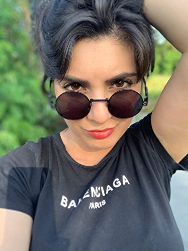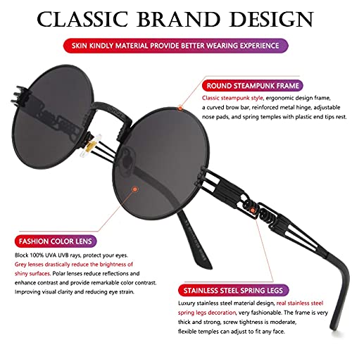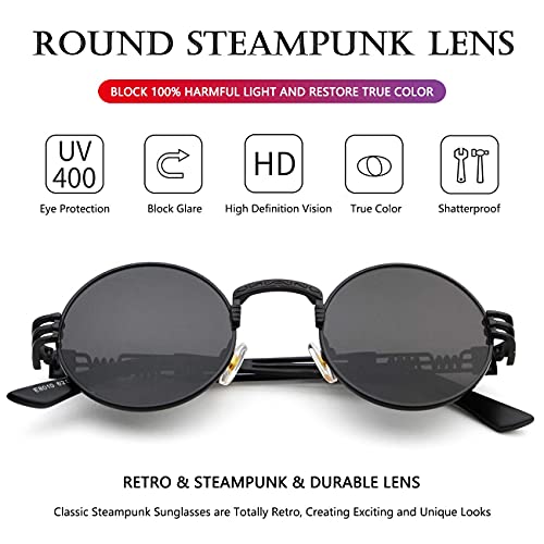 AIEYEZO Round Steampunk Sunglasses for Men Women Retro Circle Hippie Glasses Metal Frame 100% UV Blocking Lens
