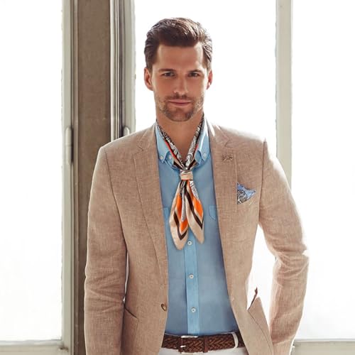 Specification: GERINLY Vintage Silk Feel Square Scarf for Men Satin Bandana Tiny Pattern Print Neckerchief Geometry Head Scarf