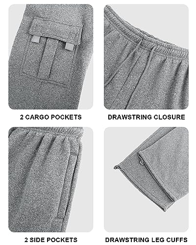 Men’s Cargo Sweatpants Casual Fleece Joggers Loose Fit Open Bottom Athletic Pants for Men with Pockets